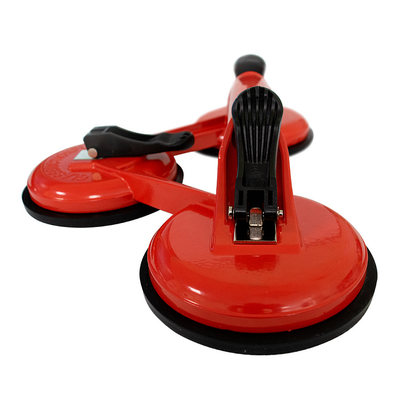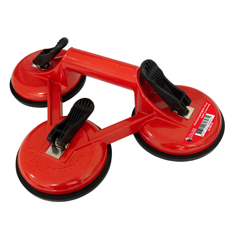 Присоска вакуумная DIAM (3-чашечная) (арт. 600116) — служит для перемещения и ручной транспортировки гладких пластин из натуральных и искусственных каменных материалов. Кроме того, позволяет надежно и безопасно удерживать и переносить листовое стекло, а также пластик. В разы снижает потери от боя и поломки. Представляет собой чашу из прочного алюминия, внутри которой помещена прочная резиновая нескользящая мембрана. Натяжение присоски обеспечивается поворотом скобы, являющейся частью рукояти для переноски зафиксированного листа.