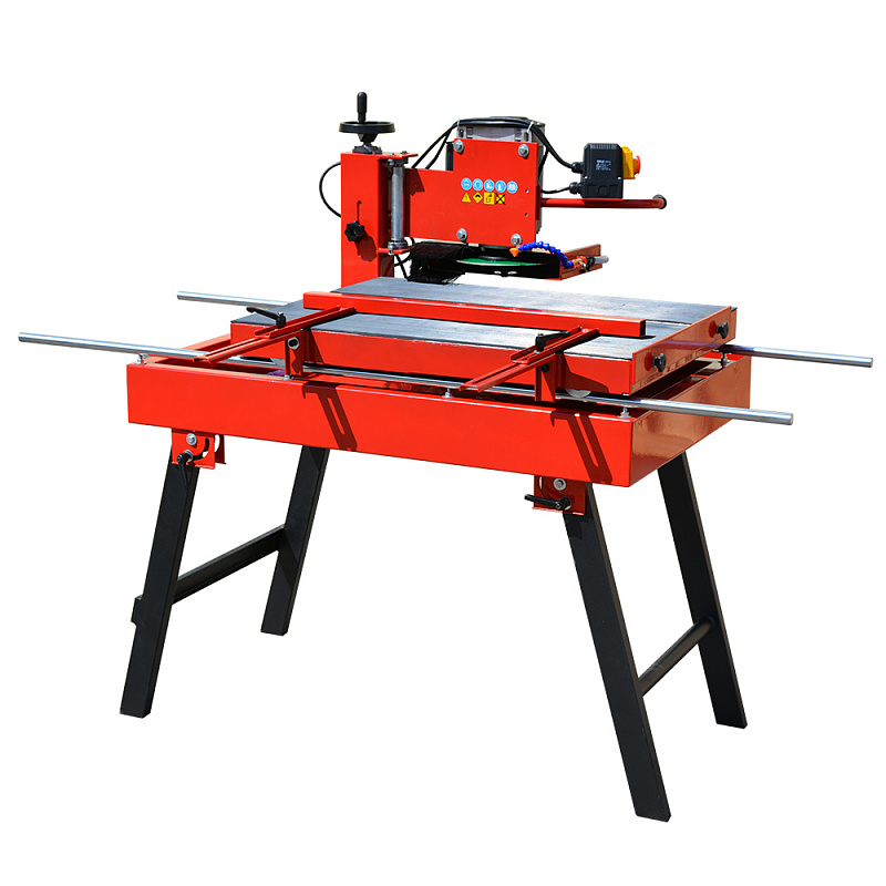 Станок позволяет делать пазы в торце плитки на длину до 800 мм. Станок снабжен регулировкой высоты поднятия диска, что позволяет делать пропилы в плитке разной толщины.