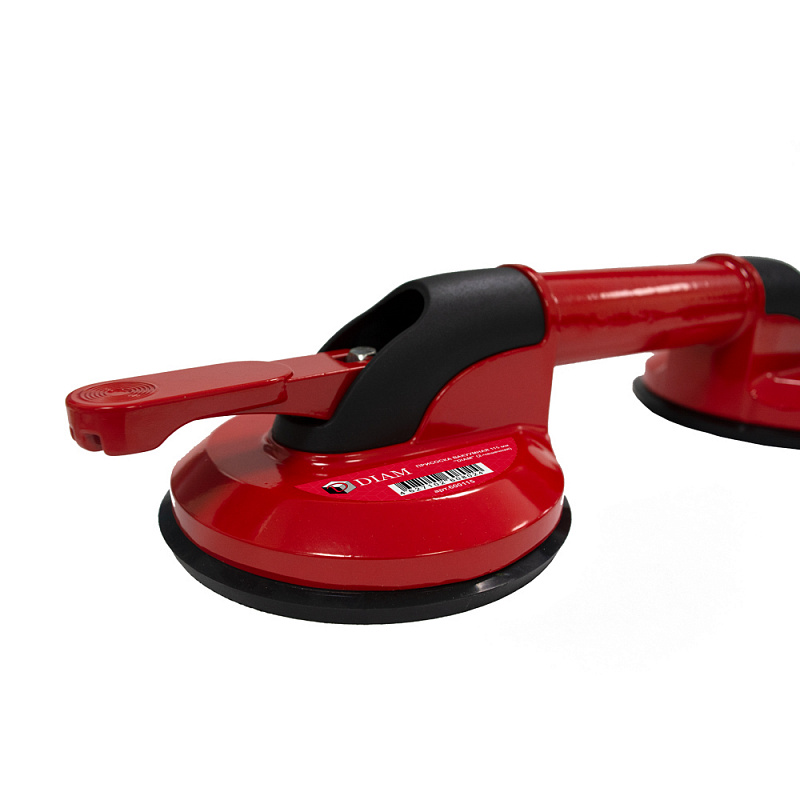 Присоска вакуумная DIAM (2-чашечная) (арт. 600115) — служит для перемещения и ручной транспортировки гладких пластин из натуральных и искусственных каменных материалов. Кроме того, позволяет надежно и безопасно удерживать и переносить листовое стекло, а также пластик. В разы снижает потери от боя и поломки. Представляет собой чашу из прочного алюминия, внутри которой помещена прочная резиновая нескользящая мембрана. Натяжение присоски обеспечивается поворотом скобы, являющейся частью рукояти для переноски зафиксированного листа.