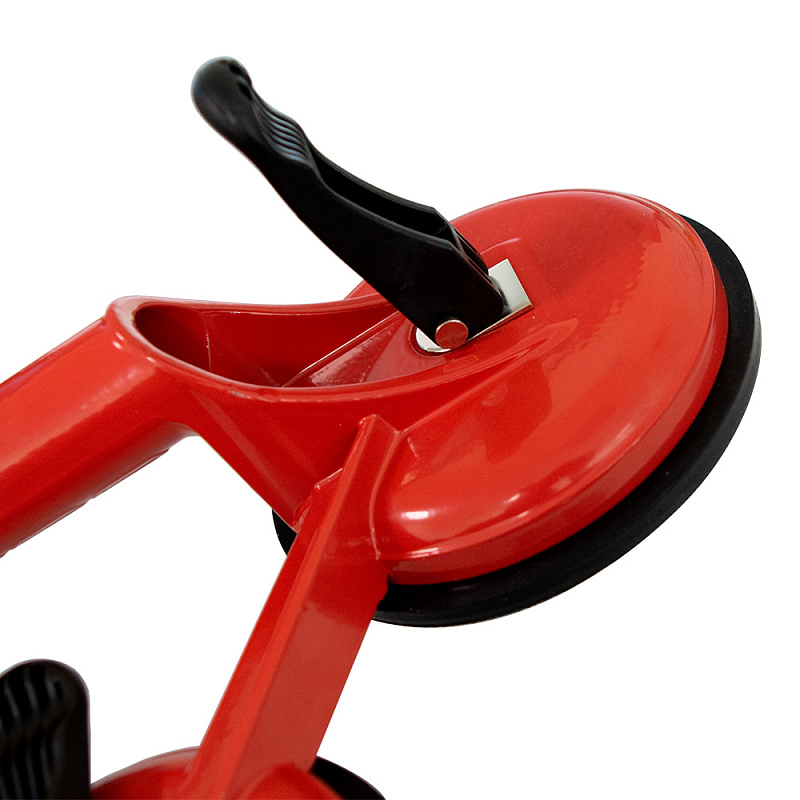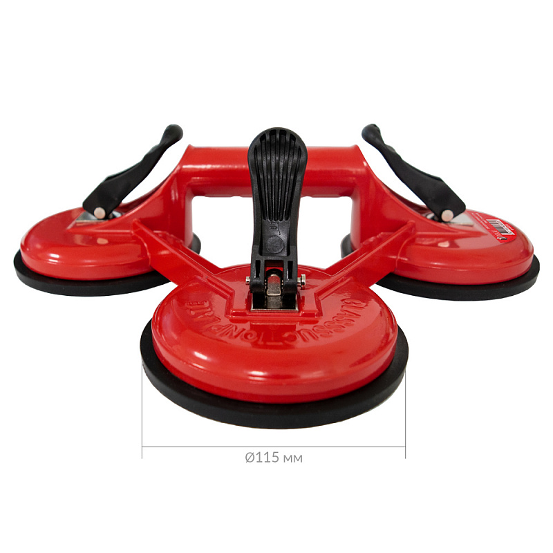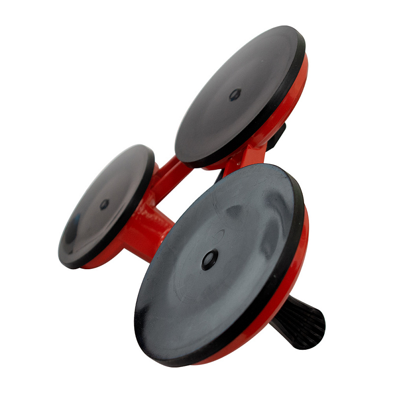 Присоска вакуумная DIAM (3-чашечная) (арт. 600116) — служит для перемещения и ручной транспортировки гладких пластин из натуральных и искусственных каменных материалов. Кроме того, позволяет надежно и безопасно удерживать и переносить листовое стекло, а также пластик. В разы снижает потери от боя и поломки. Представляет собой чашу из прочного алюминия, внутри которой помещена прочная резиновая нескользящая мембрана. Натяжение присоски обеспечивается поворотом скобы, являющейся частью рукояти для переноски зафиксированного листа.