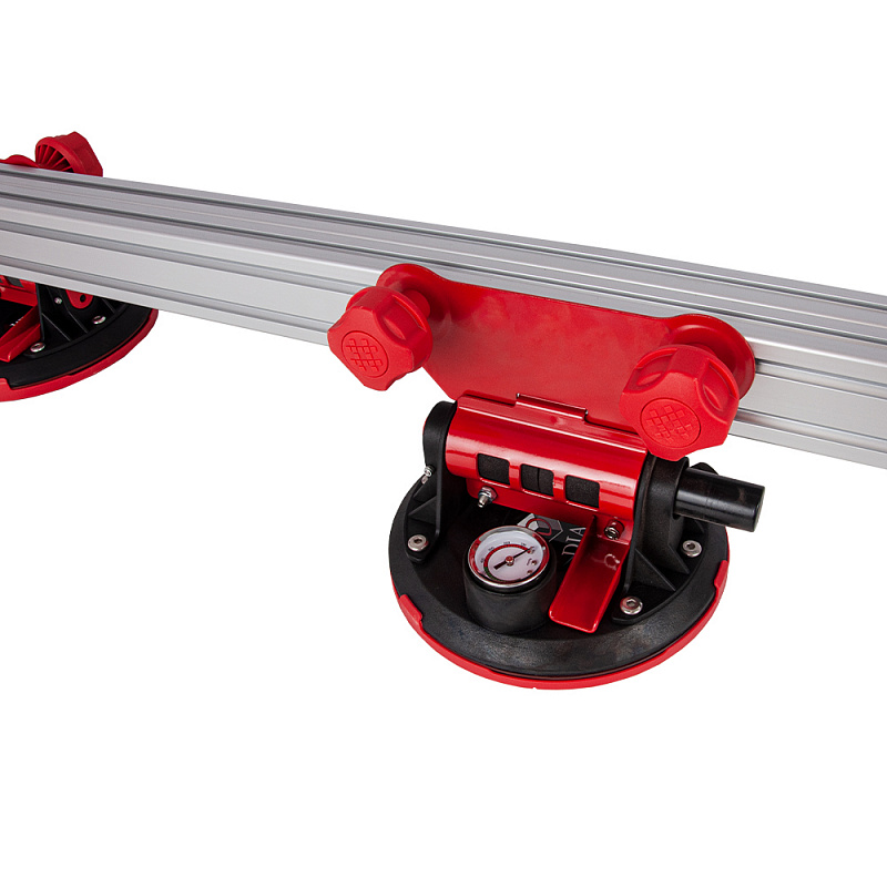 - тремя вакуумными присосками диаметром 205 мм с пневмопомпой (1 присоска выдерживает вес до 120 кг), расположенными на продольных телескопических направляющих;