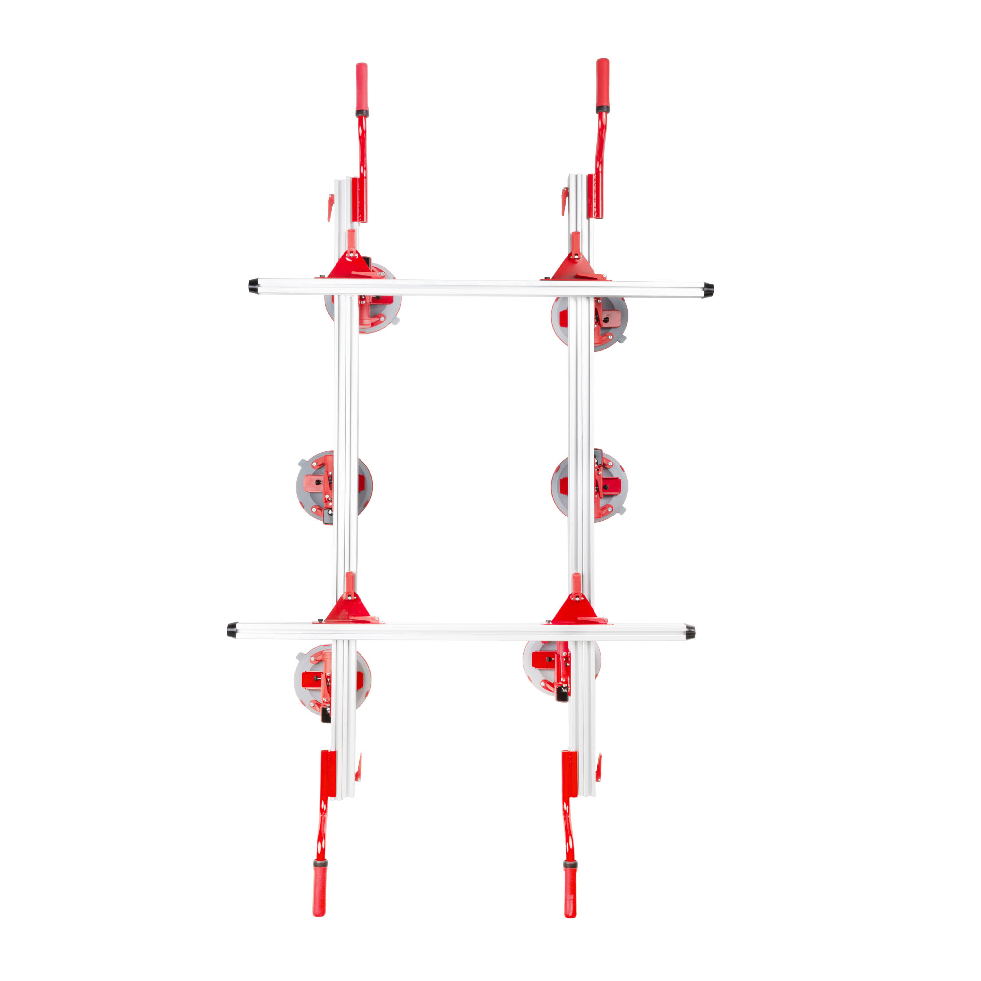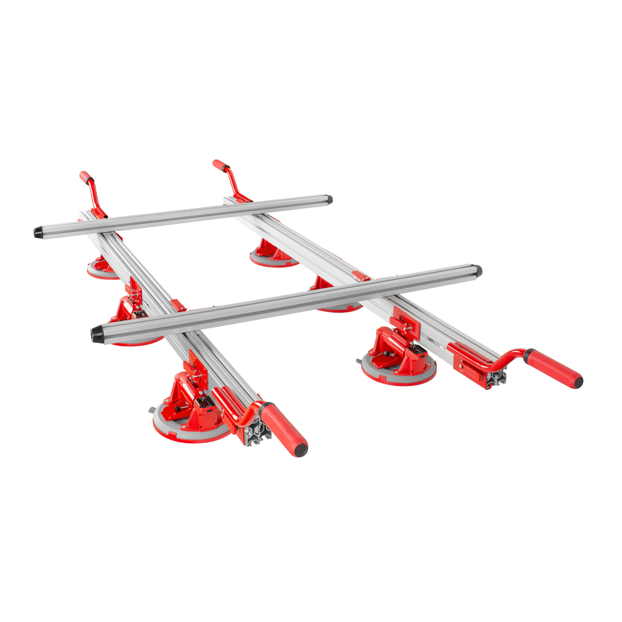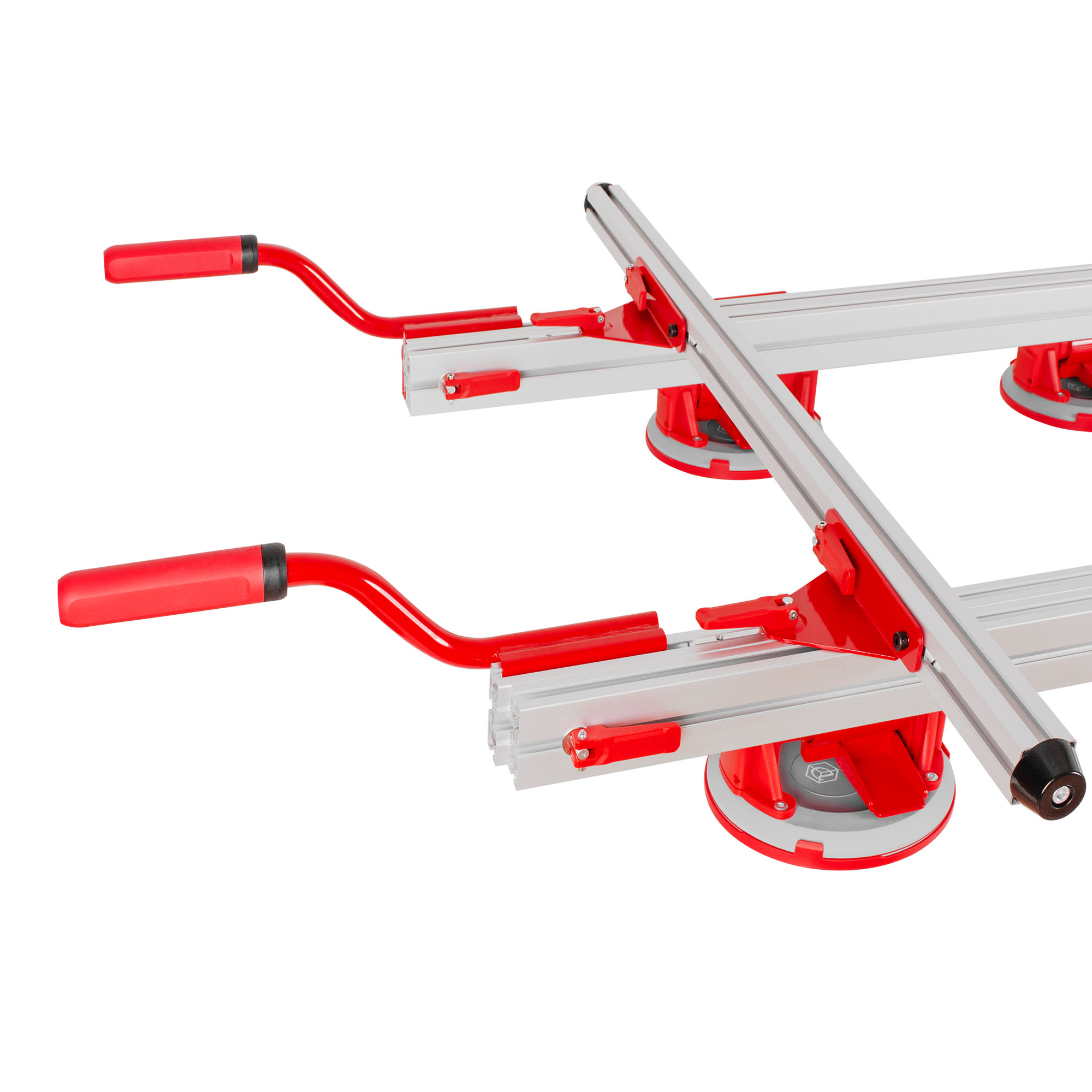 Присоски можно установить в любое место рамы и быстро фиксировать с помощью зажимов. Присоски можно снять с рамы и использовать отдельно для переноски небольшой плитки.