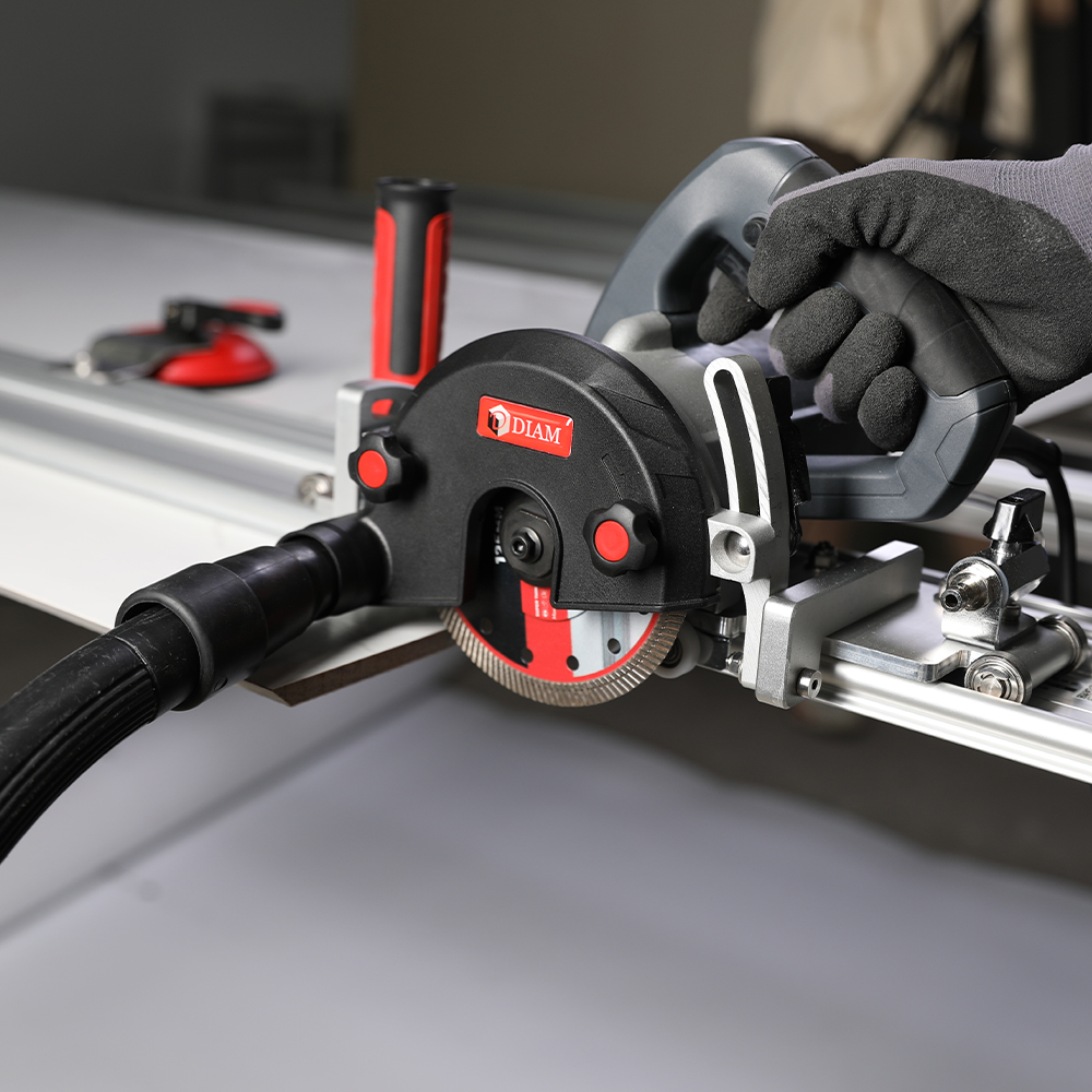 Профессиональная система резки DIAM EX-320E предназначена для раскроя любого типа керамической плитки больших форматов (например, керамогранит, мрамор, кварцевый агломерат) длиной до 3200 мм и толщиной до 17 мм. Система реза состоит из 3 направляющих общей длиной 3200 мм, электрической режущей каретки с режущим диском Ø125 мм, ручной каретки, 4 присосок, 2 струбцин для резки рельефной керамики, а также соединительных элементов.