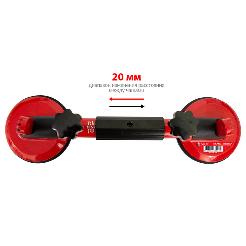 Система стягивания и выравнивания DIAM (арт.600129) предназначена для стягивания и выравнивания уровня каменных плит с высокой точностью, а так же тяжелых деталей с гладкой поверхностью: керамогранит, листовой металл, изделия из стекла и пластика. Система имеет регуляторы по высоте и крепежные элементы для фиксации заготовок в нужной плоскости. Регулировка расстояния между чашами в диапазоне 20 мм. Присоски 115 мм диаметром, позволяют выравнивать уровень плит не только в горизонтальном, но и в вертикальном положении. Прочно держится на камне и легко снимается.
