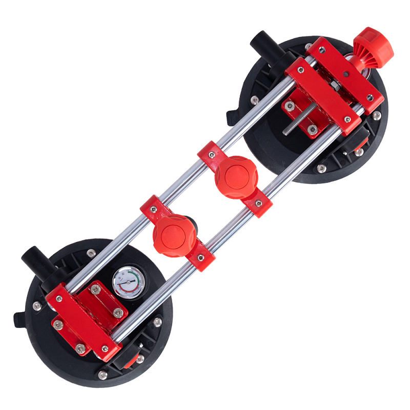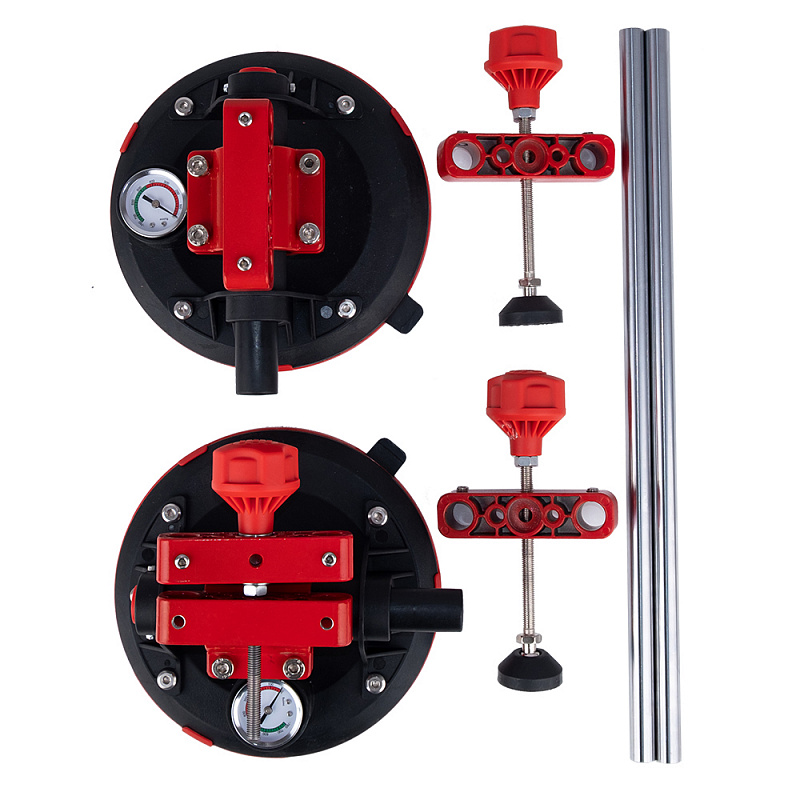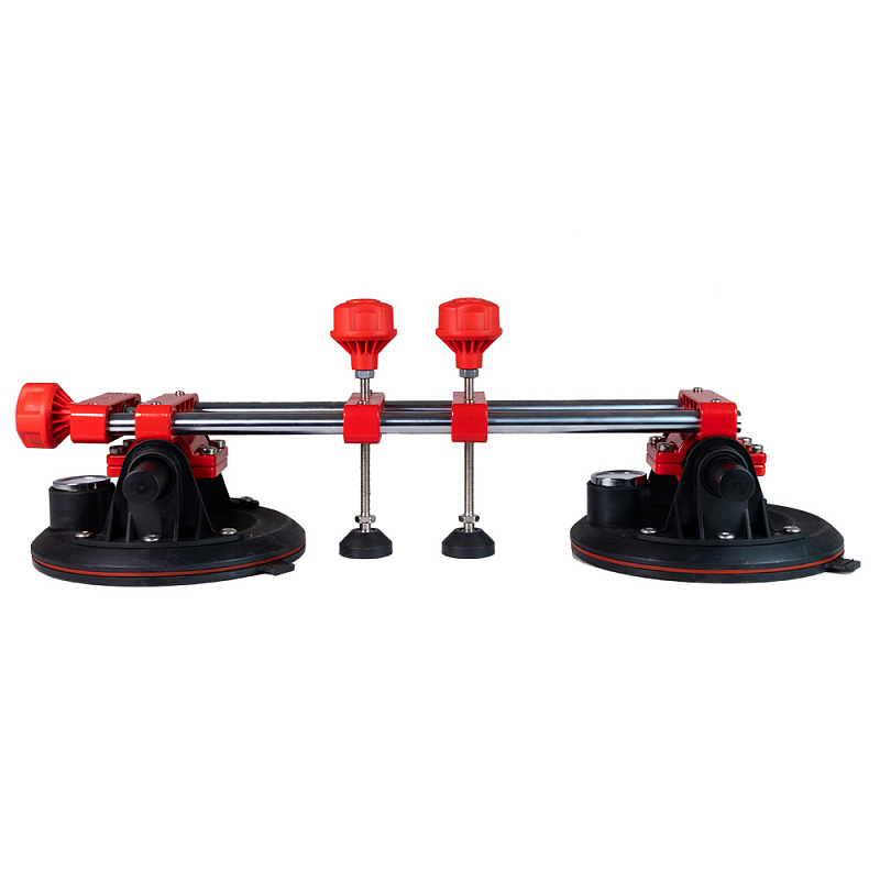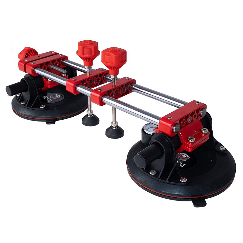 Система стягивания и выравнивания EX-2P (арт.600128) предназначена для стягивания и выравнивания уровня каменных плит с высокой точностью, а так же тяжелых деталей с гладкой поверхностью: керамогранит, листовой металл, изделия из стекла и пластика. Система имеет регуляторы по высоте и крепежные элементы для фиксации заготовок в нужной плоскости. Присоски 205 мм диаметром оборудованы помпой и манометром, что позволяет создавать необходимое давление и выравнивать уровень плит не только в горизонтальном, но и в вертикальном положении. 1 присоска способна выдерживать нагрузку до 120 кг. Прочно держится на камне и легко снимается. Поставляется в пластиковом кейсе.