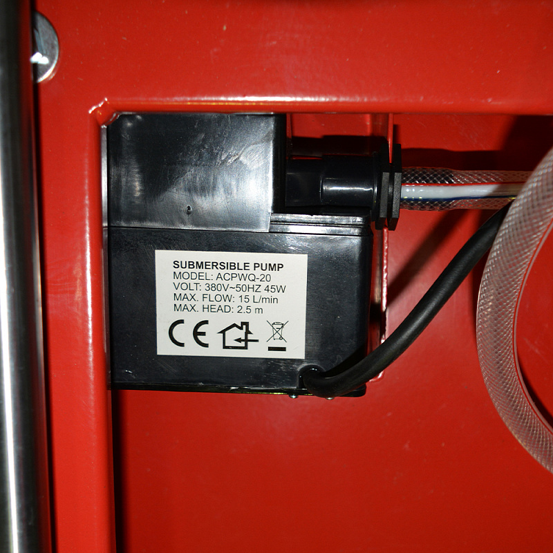 Станок предназначен для резки кирпича, облицовочной плитки, гранита, брусчатки, мрамора и других строительных и отделочных материалов. Максимальная длина реза составляет 800 мм. Эта модель отличается надежностью, устойчивой конструкцией, небольшим весом. Благодаря складывающимся ножкам удобна при транспортировке. Глубина резки при необходимости регулируется с помощью поднятия-опускания режущей головки. Резка осуществляется за счет перемещения каретки по направляющим. Возможно использование алмазных дисков диаметром от 350 до 400 мм с посадочным отверстием 25,4 мм. Так же есть возможность поворота режущей головки под углом 45 градусов для снятия фаски. Электрический двигатель снабжен защитой от перегрева. Станок укомплектован помпой для рециркуляции воды.