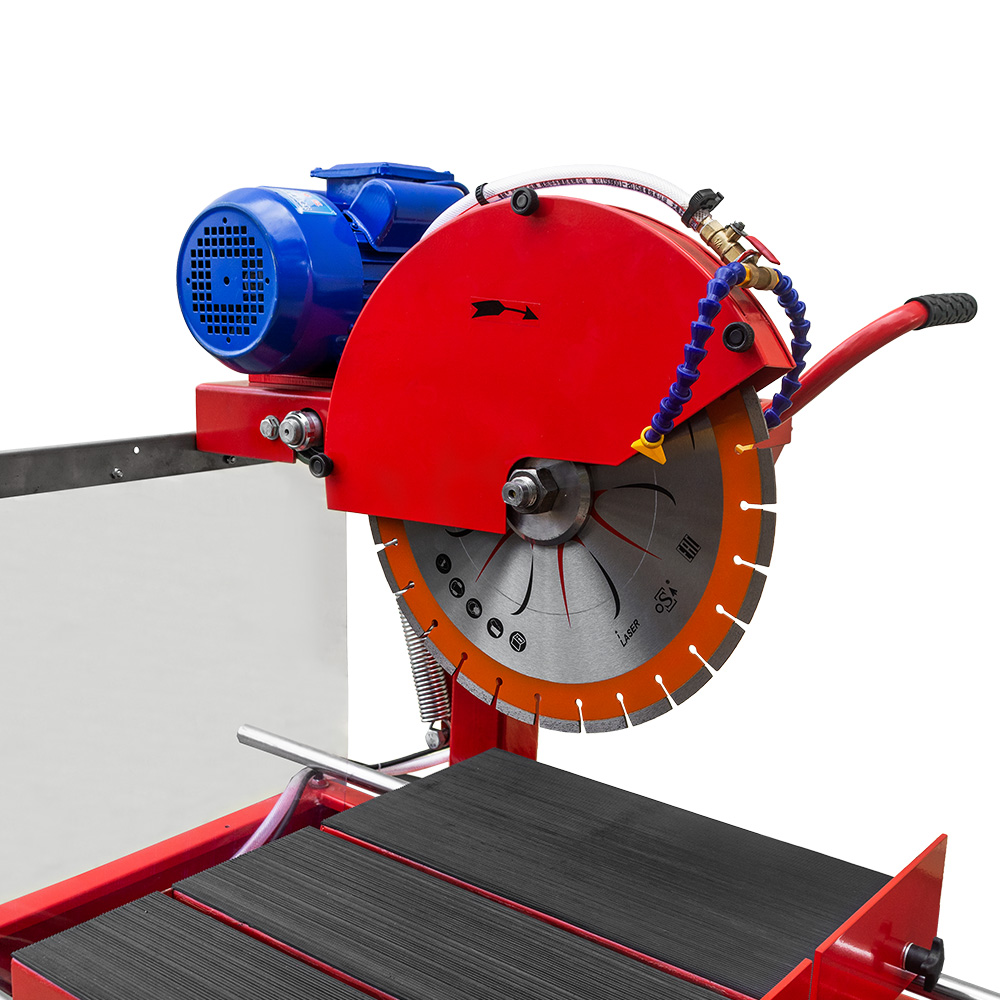 Станок подходит для резки бетонных блоков, кирпича, огнеупоров, гранита, брусчатки, мрамора и других строительных и отделочных материалов. Максимальная длина реза составляет 500 мм. Эта модель отличается надежностью, устойчивой конструкцией, небольшим весом для своих характеристик. Благодаря складывающимся ножкам удобен при транспортировке, сборке. Глубина резки при необходимости регулируется с помощью поднятия-опускания режущей головки. Резка осуществляется за счет перемещения каретки по направляющим. Электрический двигатель мощностью 2,2 кВт снабжен защитой от перегрева. Привод на диск осуществляется с помощью ременной передачи (2 ремня).